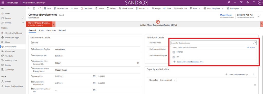 We are done with the configuration. Now, the Center of Excellenct (CoE) background processes (flows) will run on a schedule and sends notifications to Power Platform Admins if environments are over or 80% close to their approved capacity.